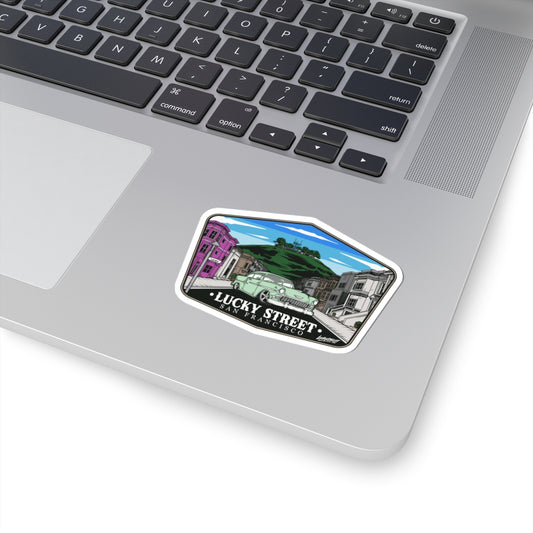 Lucky Street hand-drawn badge design Kiss-Cut Stickers, Fun Stickers for Laptops, Travel Decor, Urban Art Graphics, Gifts for Travelers